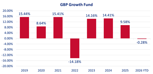 See the below performance figures for the GBP Growth Fund as at 31 January 2026. The returns are after fees and after taxes: