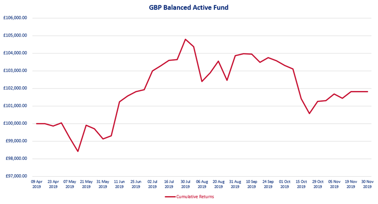 Please find below the latest performance figures for the GBP Balanced Active Fund as at 30 November 2019. The returns are after and fees and taxes: