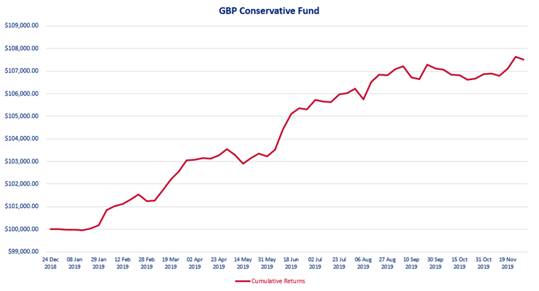Please find below the latest performance figures for the GBP Conservative Fund as at 30 November 2019. The returns are after and fees and taxes: