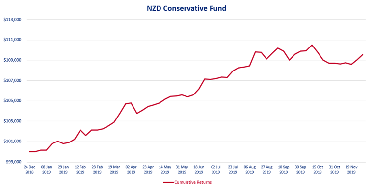 Please find below the latest performance figures for the NZD Conservative Fund as at 30 November 2019. The returns are after and fees and taxes: